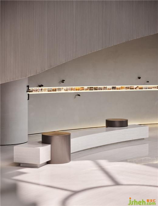 城市地貌的發(fā)展肌理注入空間,那些消失于時代洪流下的街道與新建的城市道路在金屬鏤空的設(shè)計手法下交疊相映,印證城市的變遷。