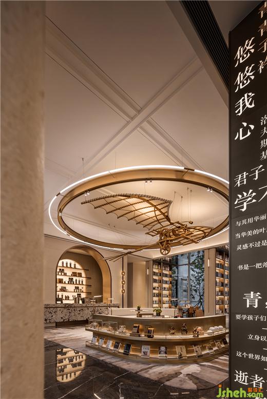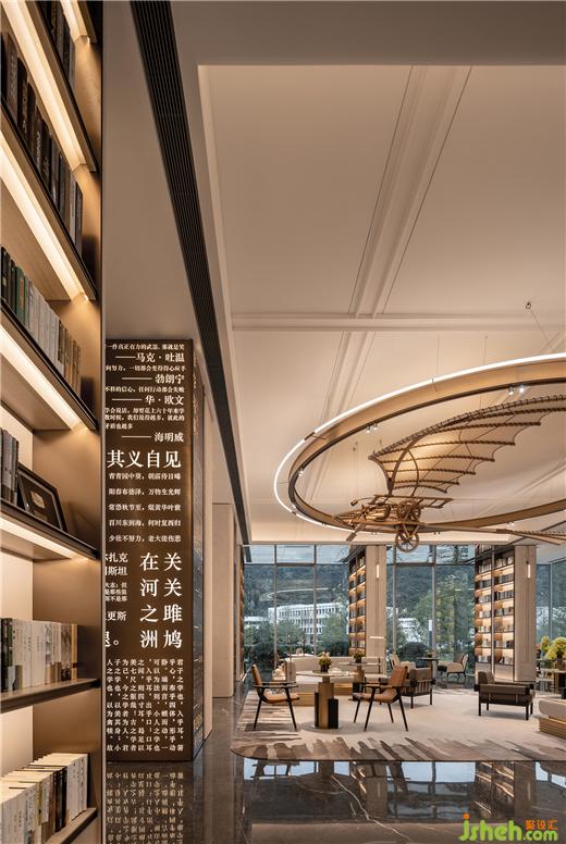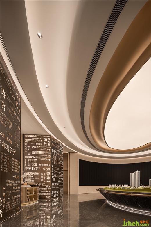 展開的雙翼邀請到來的讀者遨游云端上的書海,細(xì)膩的皮革,油墨的清香,廣州保利錦上營銷中心設(shè)計(jì)呈現(xiàn)出不言而喻的文人氣息。