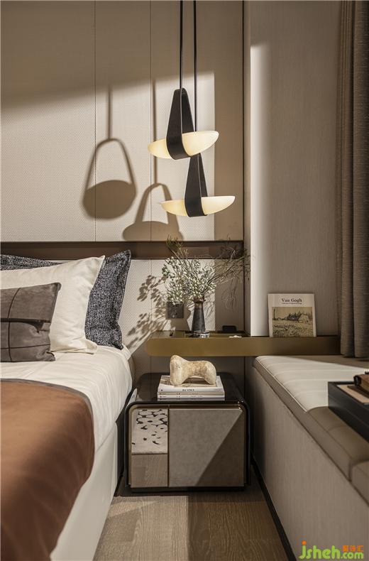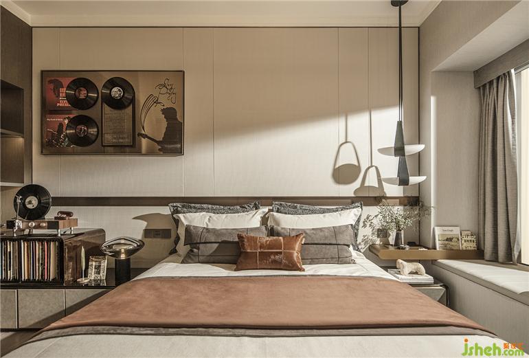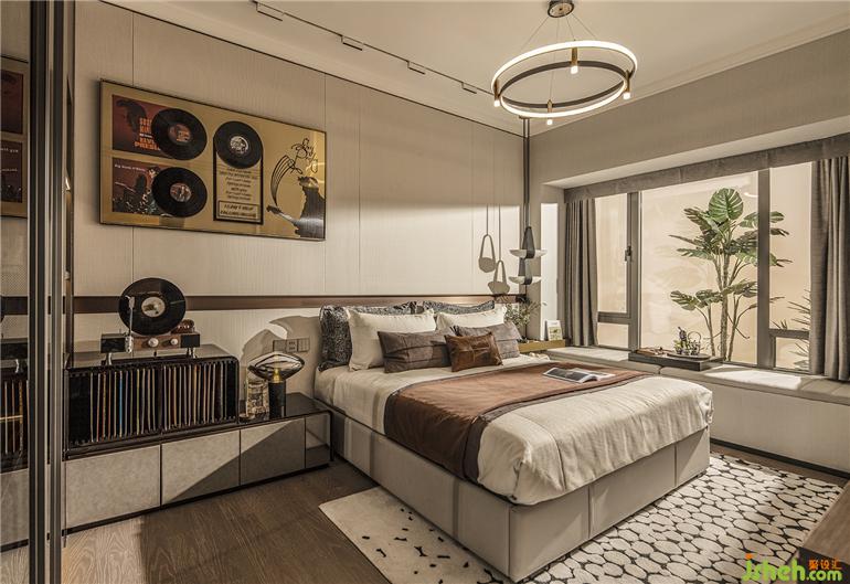 在流媒體音樂流行的當(dāng)下,對黑膠唱片的情有獨(dú)鐘,源于對音樂的敬畏與熱愛。廣州保利錦上樣板房設(shè)計(jì)臥室的角落設(shè)置雙層收納柜,收藏每一首來之不易的金曲,動聽的旋律詮釋浪漫與情懷。