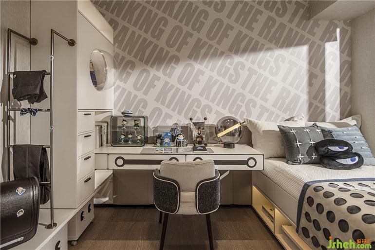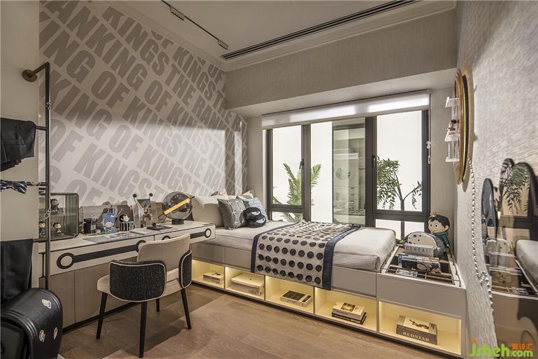 廣州保利錦上樣板房設(shè)計(jì)基于動漫電影的主題,以動感的文字墻和波點(diǎn)紋路的床具傳達(dá)活潑可愛的生活氛圍,大大小小的卡通模型有序散落在房間角落,與孩子一起探索世界的奇妙。