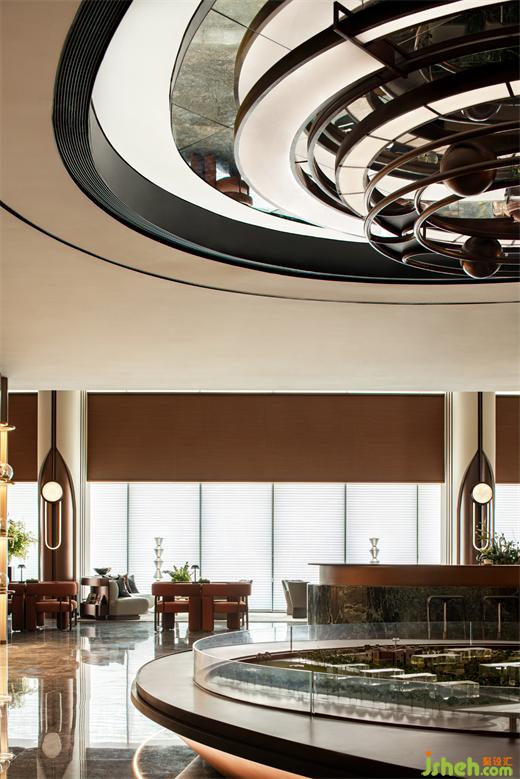凱德營銷中心設(shè)計將“時間定格器”的概念植入到圓環(huán)裝置中,隨著環(huán)環(huán)遞進聚焦空間的視覺重點——未來城市的誕生。