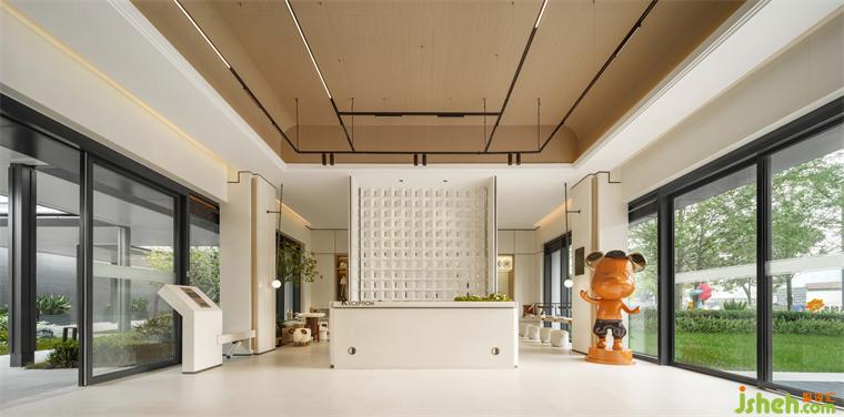 最大化空間的窗戶面積,自然的綠意從戶外引入空間釋放,清風(fēng)拂過(guò)水面帶走暑意,樹(shù)影婆娑,保利營(yíng)銷中心設(shè)計(jì)帶領(lǐng)人們進(jìn)入空間,開(kāi)啟一場(chǎng)治愈之旅。
