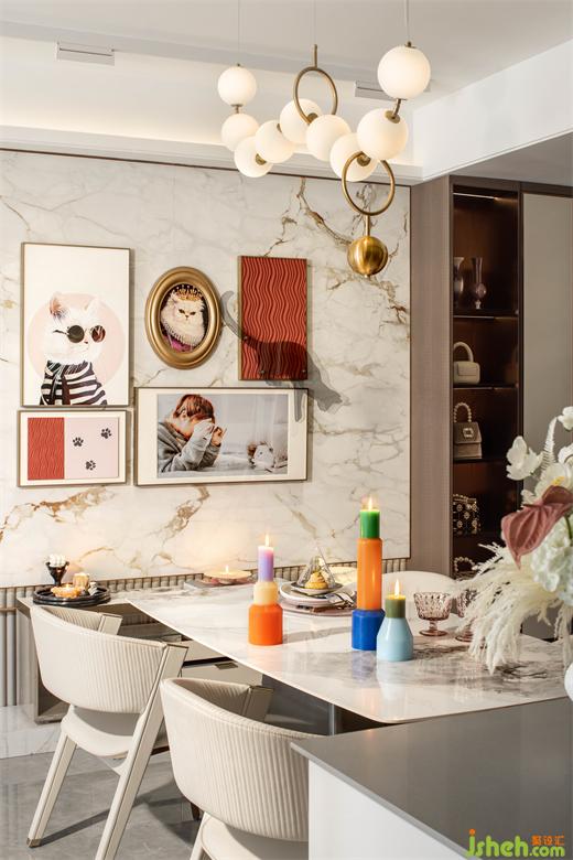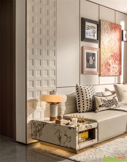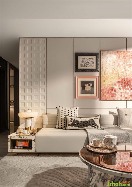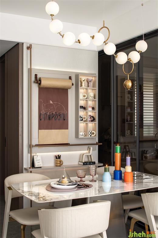 掛畫展示主人家對貓咪的寵愛,讓素凈的空間多了俏皮與可愛,墻面的工藝更添高雅的細致,保利樣板房設(shè)計營造浪漫的生活氛圍。