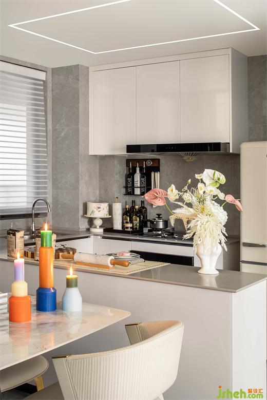蝴蝶蘭雕刻在墻上,正如蝴蝶般翩翩飛舞,優(yōu)雅的吊燈綿延花瓣的浪漫,飄窗上擺放著與季節(jié)氣息有關(guān)的香薰蠟燭,享受生活的每一刻慵懶。
