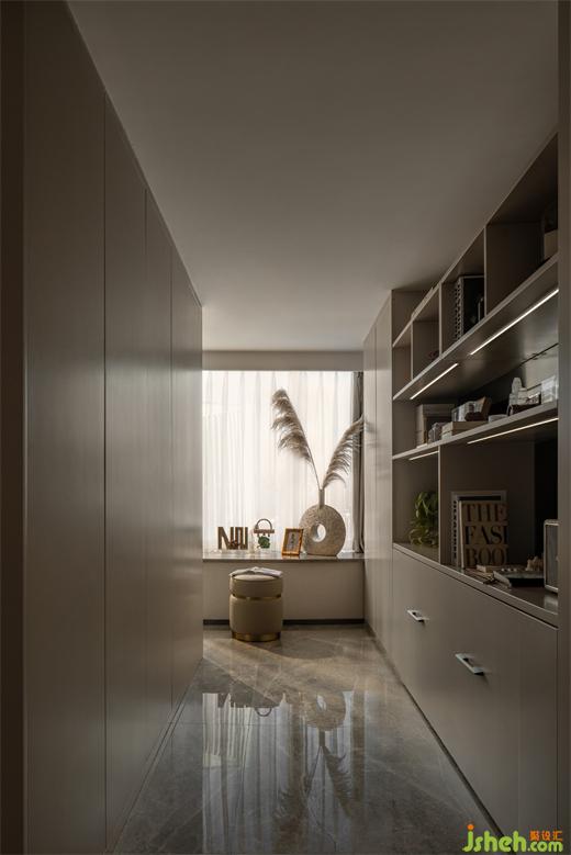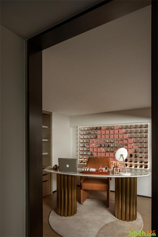 女神的衣櫥,集辦公、衣帽間功能為一體的實用小空間,滿足不同需求,廣州公寓設(shè)計提升居家生活的舒適體驗。