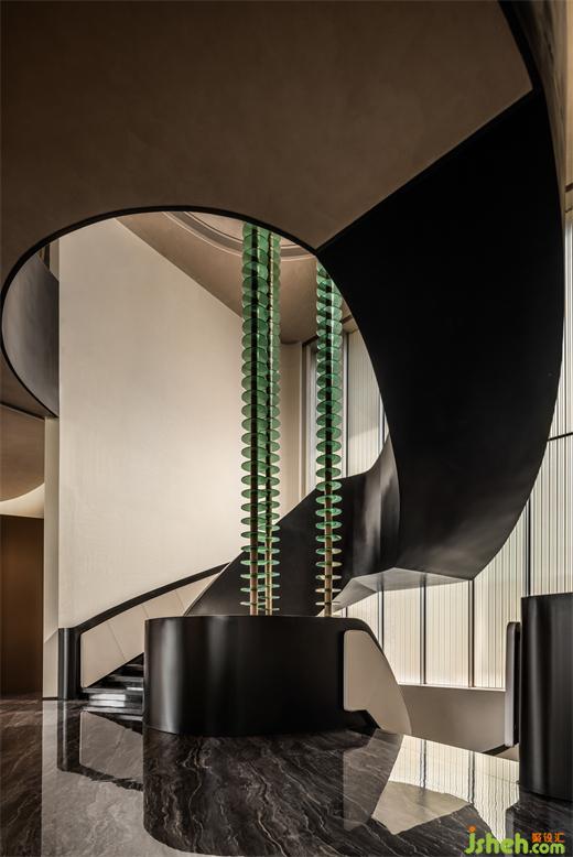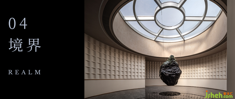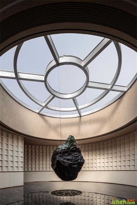 緩緩踏上二層,視光所及穹頂天窗下是萬物源石所在,“森·源”裝置以隕石為原型,鄭州會(huì)所設(shè)計(jì)四周環(huán)繞壁龕具象萬物對源處的回響。