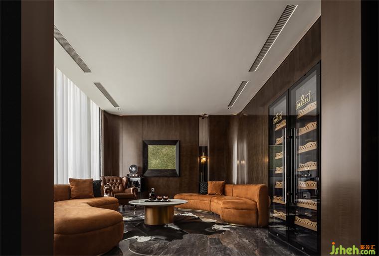 沙發(fā)宛如夕陽余暉染上了一角,一抹暖意溫暖了整個(gè)空間。鄭州會(huì)所設(shè)計(jì)細(xì)膩的絨面肌理,柔軟的坐感,讓人沉醉其中,品著瓊漿玉液,聆聽輕柔音樂,忙碌的時(shí)光也慢了下來。
