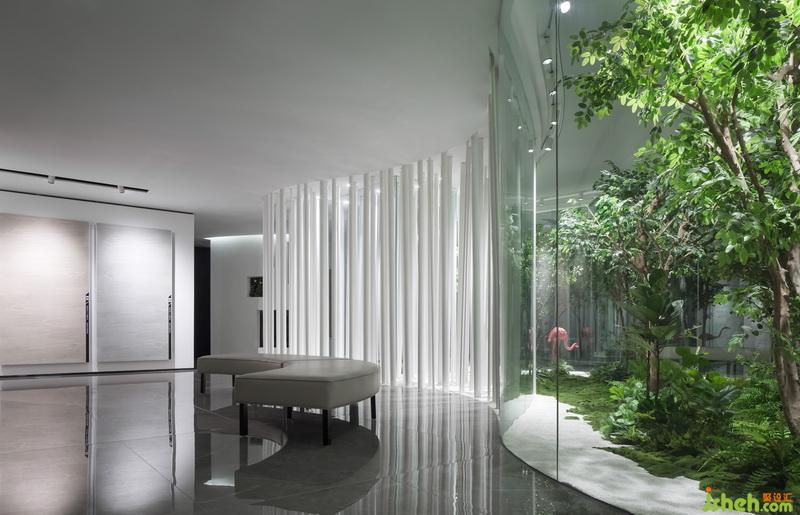 本項(xiàng)目設(shè)計(jì)創(chuàng)意源于大自然的美,草木山林,高山流水,讓人置身于自然的懷抱,空間里有自然的呼吸,環(huán)繞的景致,縫隙之間的綠,內(nèi)外交疊映射的景,光影與時(shí)間的流動(dòng),樹葉的觸感,仿佛還有樹梢清唱的鳥鳴,思與境偕......
