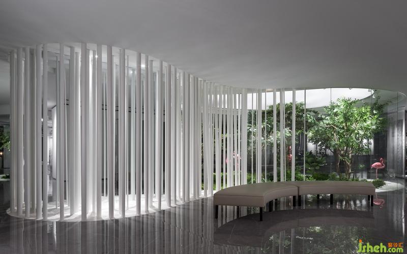圓形地面與天花呼應(yīng),體現(xiàn)空間的張力與靈動(dòng),以森林姿態(tài)圍合空間,生動(dòng)的流線元素,增強(qiáng)了趣味,缺失的正方體塊的洞口,既暗示著每一個(gè)未知空間的開始,又使空間相互滲透,進(jìn)一步突出設(shè)計(jì)主題。