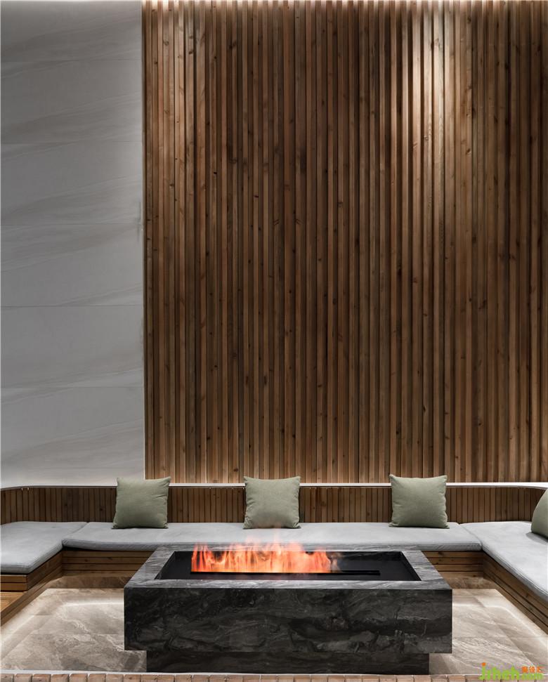 在現(xiàn)實生活中,人們生活在喧囂繁雜的鋼筋水泥城市里,內(nèi)心幻想著一處歸隱避世的清凈之所,以此為創(chuàng)意的閑庭后院就是試圖實現(xiàn)這一理想,用素雅的水泥磚以及質(zhì)樸的木材做成的都市庭院,構(gòu)建一處暫避浮躁喧囂、凈化心靈之地,庭院一邊做成的圍合式休閑區(qū)舒適愜意,休閑區(qū)中央石臺放置的戶外烤爐更給人送去一絲暖意。這就是主創(chuàng)的設計初衷。