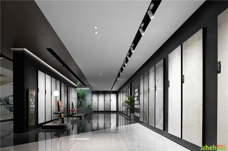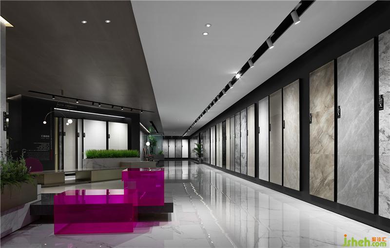 品牌形象區(qū)采用長尺度的接待臺引導(dǎo)空間動線,拓展空間邊界,通過真實和虛擬場景結(jié)合的方式讓空間無限延伸,模糊現(xiàn)實的邊界,整個動線采用自由平面的方式展開,以一步一景的方式形成客觀動線,實現(xiàn)觀者在空間中自由漫步。