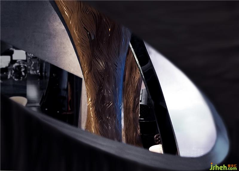這種詩意表達除了自然主義的視覺美感更增加了人文主義的浪漫情懷,一方面凸顯金屬獨特的鍛造工藝,同時在視覺上呈現(xiàn)出材質的獨特自然質感佛山展廳設計,另一方面還賦予了金屬鍛造過程中的另一種物理狀態(tài),鐵礦石經(jīng)過高溫熔化后自然流淌!動和靜相存,剛和柔并濟!這也是自然主義的魅力所在。
