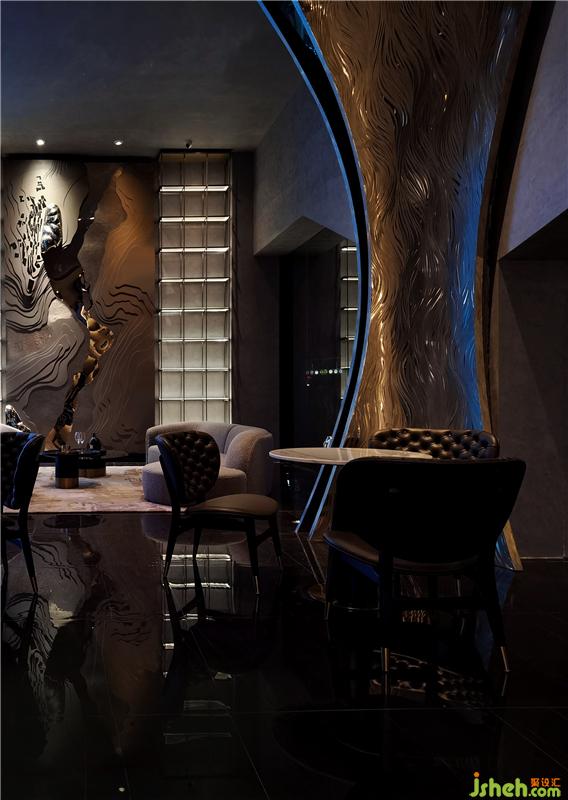 大堂吧以極具自然形態(tài)的葉片形成環(huán)抱感,給人一種空間的安全感和溫和感,葉片上手工打磨的肌理猶如樹葉的筋脈,吸取著空氣中養(yǎng)分,形成空間的生命力和視覺張力,自然主義最大的受益者是人佛山展廳設計,人的內心更渴望生命的氣息, 有機形態(tài)和曲面感減少了人們內心的緊張感!