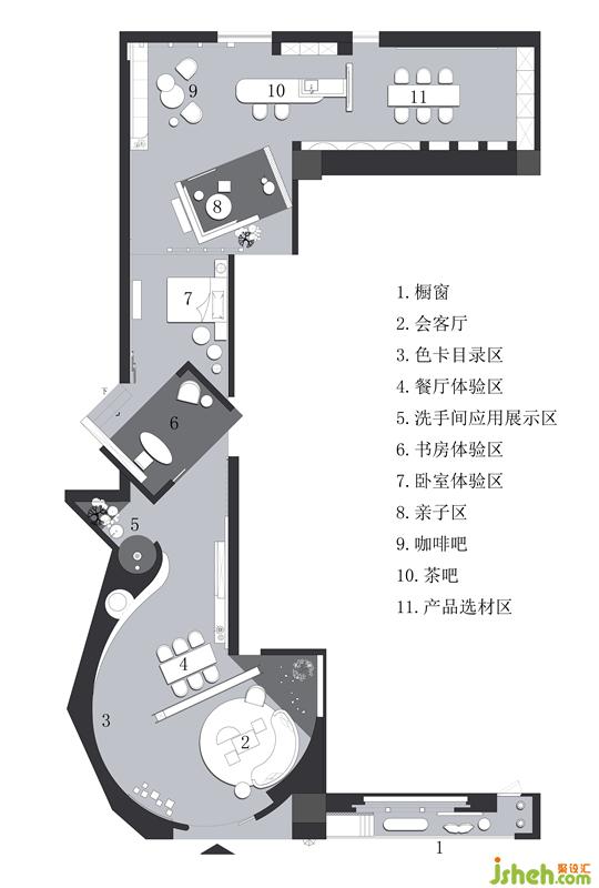 不規(guī)則的幾何線條互相交織/分離,一個散而聚的矛盾體構(gòu)成了一個自由開放的幾何平面,佛山展廳設(shè)計為通透開放,自由流動的空間性格奠定了基礎(chǔ),簡單的幾何體量,無裝飾的立面造型,縫隙窺視的既視感,為空間闡述著一種新的氛圍,以小見大。