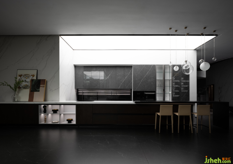 在細(xì)節(jié)處理上,對材料的對縫,收邊,比例都經(jīng)過細(xì)致的推敲,對加工細(xì)節(jié)的極致追求,體現(xiàn)出對使用者的尊重感。將金屬黃銅材質(zhì)低調(diào)地搭配在空間中,使得室內(nèi)的寧靜氛