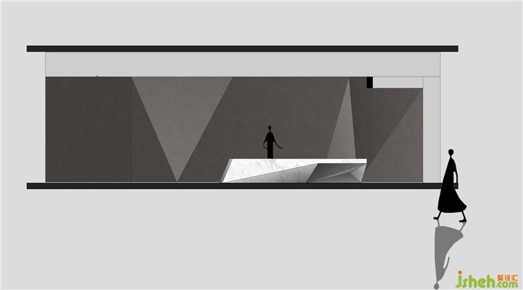 建筑大師高迪曾說(shuō)過(guò):“曲線屬于上帝,直線屬于人類?!蹦敲葱本€呢?它似乎屬于一種未被定義的形態(tài)。斜形的物體從物理學(xué)的角度來(lái)看具有多重性;既代表了極端的不穩(wěn)定性,比如意大利博洛尼亞的雙子斜塔以及比薩斜塔,也代表了極端的穩(wěn)定性,比如埃及金字塔。巖板展廳設(shè)計(jì)利用這種未被定義的斜線來(lái)構(gòu)建和分割空間,使空間具有一種獨(dú)特的場(chǎng)所精神!