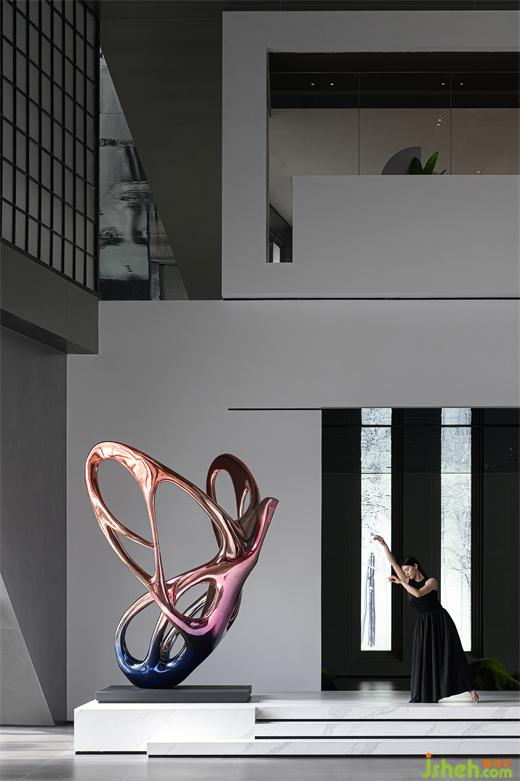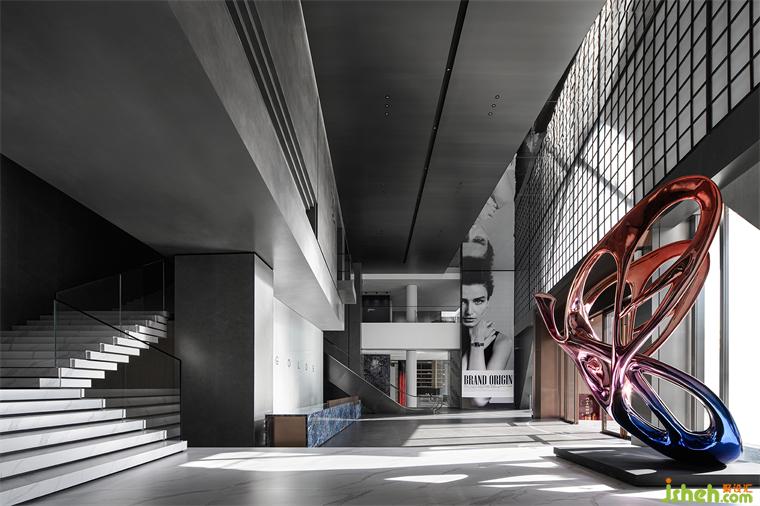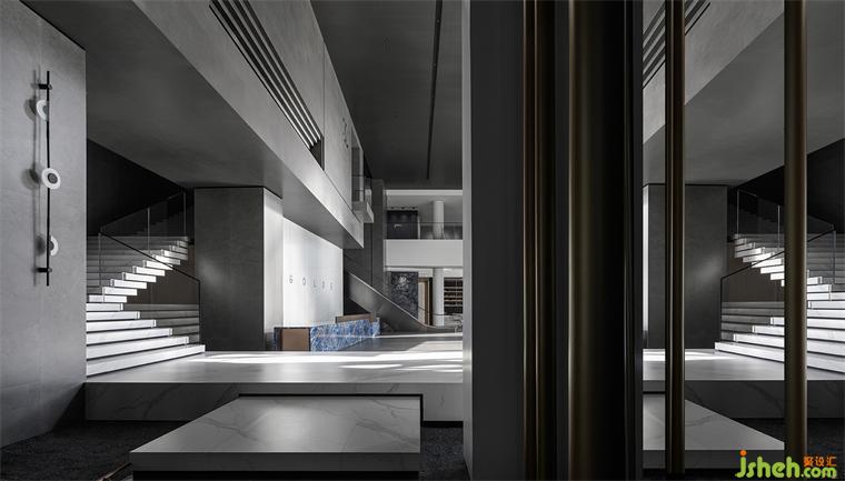 清晨,暖暖的陽光透過整面的方格玻璃窗,輕柔地灑落在大堂的每一個(gè)角落,勾勒出一種神秘而神圣的美感,光影彌漫在空間之中,散發(fā)著獨(dú)特的優(yōu)雅氛圍。中空通過兩層結(jié)構(gòu)造型,運(yùn)用幾何元素,瓷磚總部設(shè)計(jì)以方形體塊進(jìn)行穿插疊加,營造空間立體感的同時(shí),也使得產(chǎn)品精致感與空間藝術(shù)感相得益彰,以此形成獨(dú)特的品牌符號(hào)和性格IP.