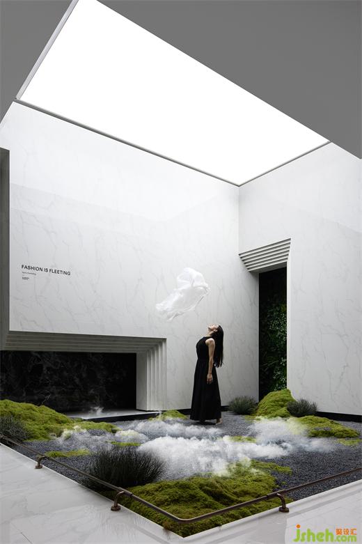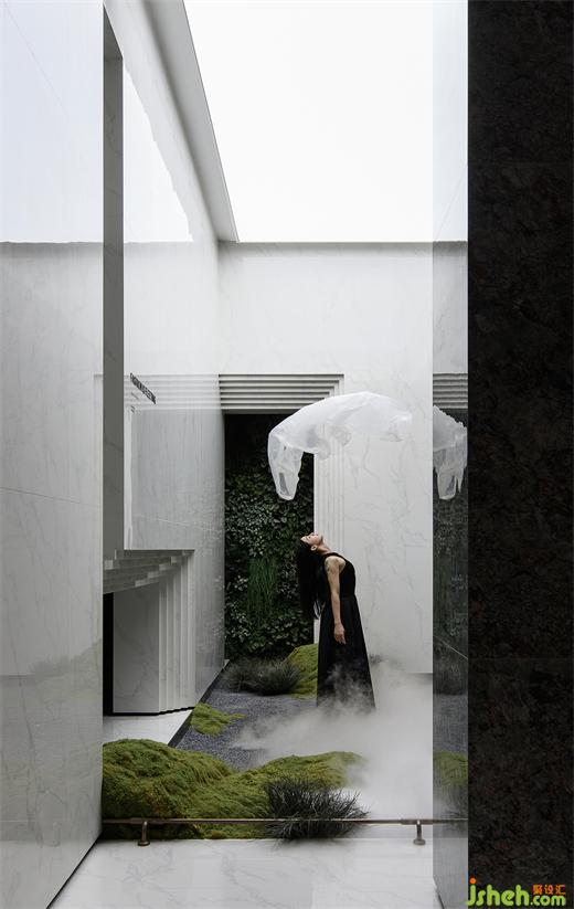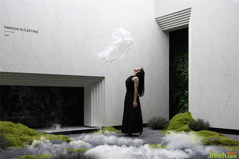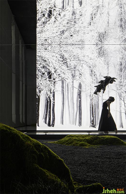 潔白的叢林、流動(dòng)的霧氣、飄散的云霧,給空間增添些許神秘感,舞者猶如翩翩仙子,優(yōu)雅地轉(zhuǎn)身、旋轉(zhuǎn)、起舞,像飛舞的蝶,舞動(dòng)著時(shí)尚的華彩。
