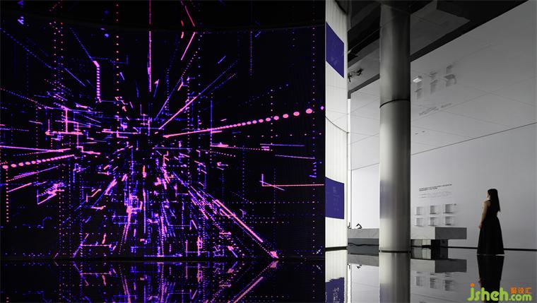 設(shè)計(jì)師在此空間重點(diǎn)表達(dá)了產(chǎn)品的健康能量功能,瓷磚總部設(shè)計(jì)在空間的整體留白中以極簡(jiǎn)的文化符號(hào),訴說產(chǎn)品持續(xù)釋放出的一種遠(yuǎn)紅外線和負(fù)氧離子,讓人沉浸其中,感受產(chǎn)品降解甲醛、抗菌、降低室內(nèi)裝修污染的物理性功效。健康體驗(yàn)空間,整體以純白的色彩氛圍,構(gòu)造出“凈化空間”的意境,通過一面變幻的LED墻面,將遠(yuǎn)紅外線具象化,讓人一目了然它的光波漸變蔓延和擴(kuò)散的軌跡。