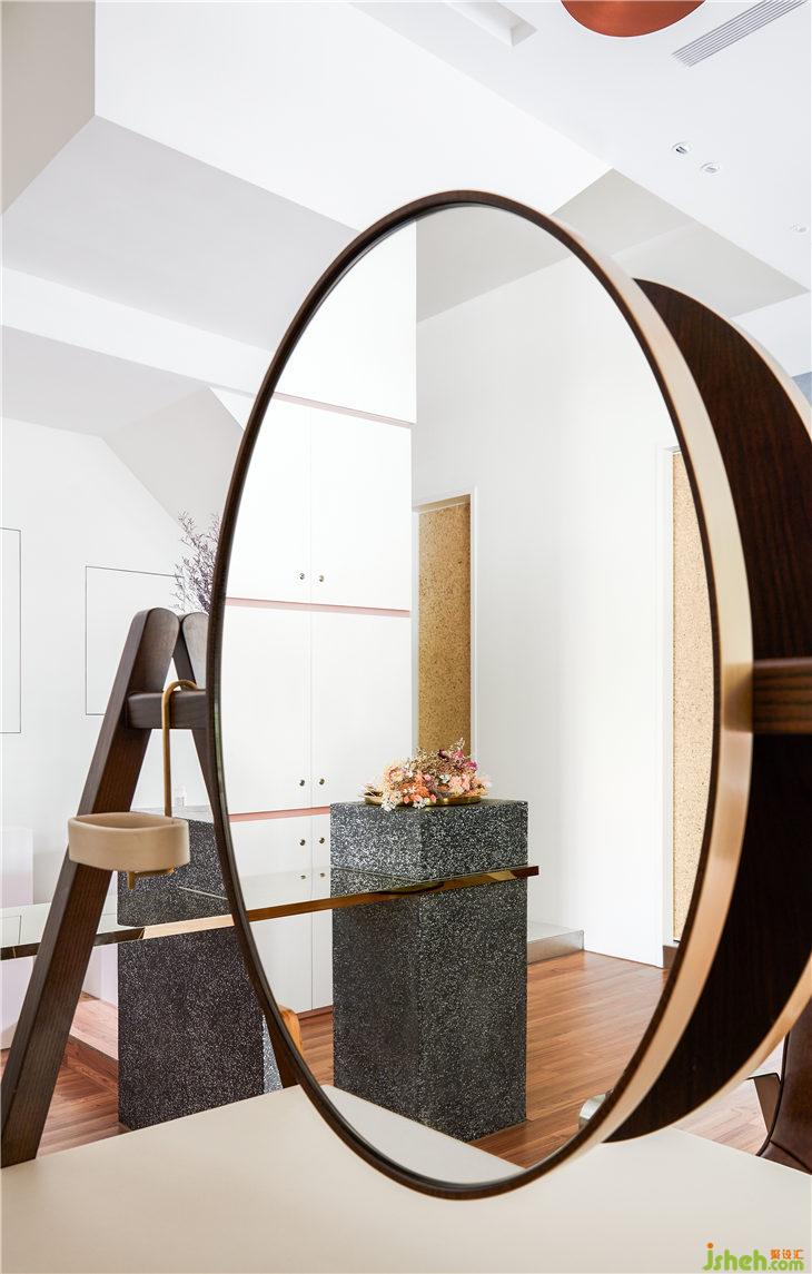 美發(fā)鏡臺(tái)選用倒V型如畫架設(shè)計(jì),發(fā)型師就像畫家般,將褪色的發(fā)絲重現(xiàn)光澤色彩,透過修剪變回充滿精神的好氣色,替客人描繪出獨(dú)一無二的美好。同時(shí)也像化妝鏡般,一頭好看的發(fā)型就像上了妝,讓你充滿自信。跳脫了一般商業(yè)空間的框架,將發(fā)廊變身為獨(dú)到的藝術(shù)展演空間,而美發(fā)則成為生活中充滿意義的事物。