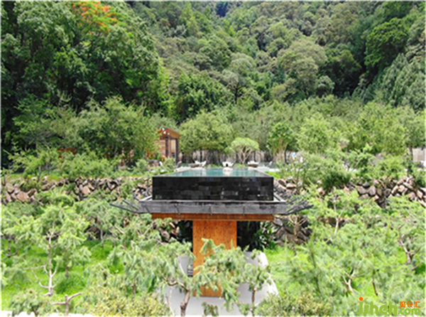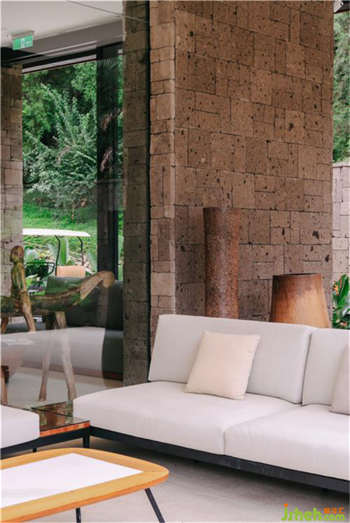 建筑結(jié)構(gòu)主要采用天然砂巖、黑色火山石,用料融入地景納為建筑的一部分。自然原始、無刻意雕琢,用石頭的沉穩(wěn)收斂與自然的密不可分,將酒店巧妙的隱藏在牛眠山“忘憂發(fā)呆”中。石材作為主要的支撐結(jié)構(gòu),再以木頭做為點綴,整體感質(zhì)樸以及穩(wěn)重,也增加了木材的細膩溫暖。裝修公司