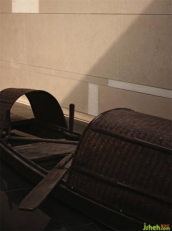 轉(zhuǎn)身入門,微微拱起的棧橋,一葉烏篷船停泊在側(cè)。晴天時(shí)的光線從穹頂?shù)奶齑皟A瀉而下,隨時(shí)間印刻在石板之上。