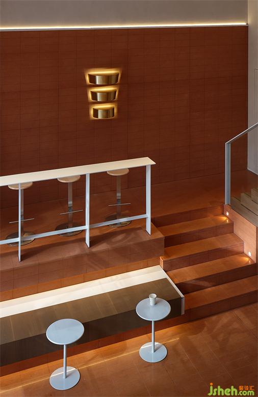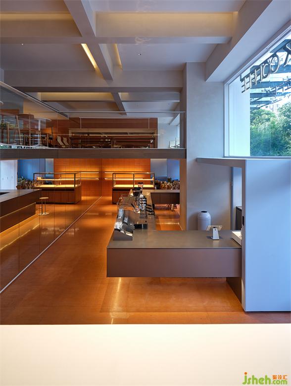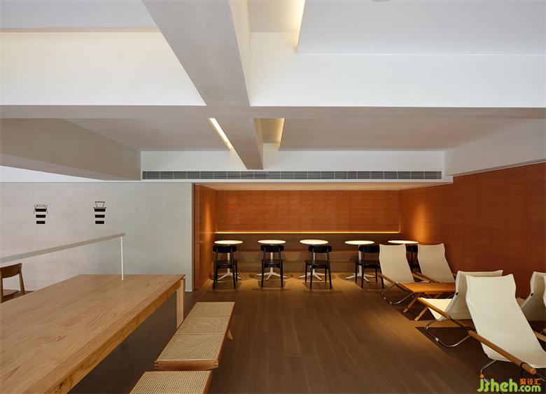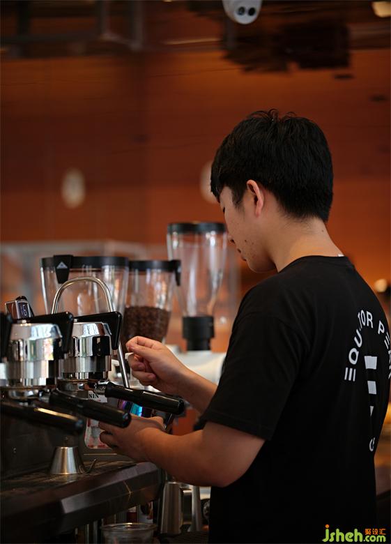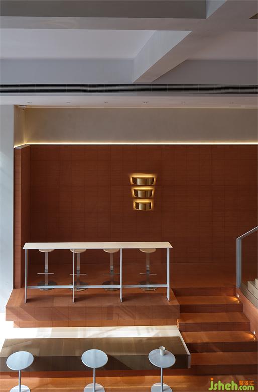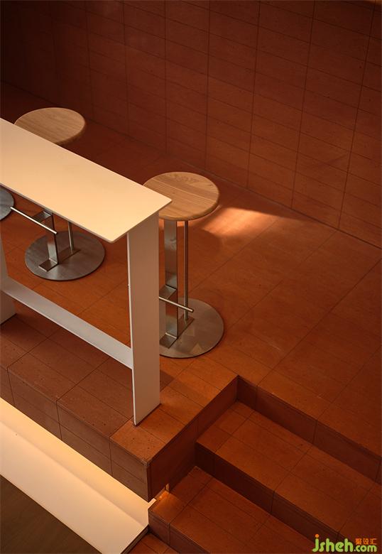 為了使咖啡廳的內(nèi)外溝通與延伸成為可能,并最大程度地實(shí)現(xiàn)由室內(nèi)向室外拓展的視覺效果,該COFFEE設(shè)計(jì)在材料的選擇和運(yùn)用上費(fèi)了一番功夫。