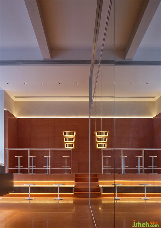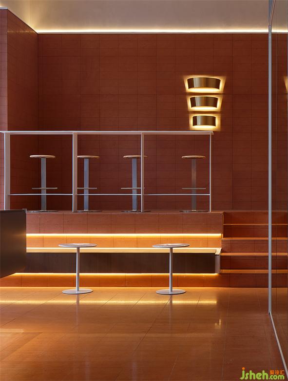值得注意的是,室內(nèi)同時也使用了鏡面材質(zhì),內(nèi)置鏡面映射室外場景,COFFEE設(shè)計使得室內(nèi)外實現(xiàn)了一種“并置”的效果,這一處理無疑加強了內(nèi)外空間的溝通聯(lián)系,并從視覺層面將這兩種感知糅合到一起。