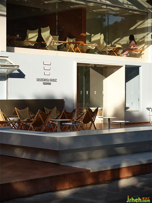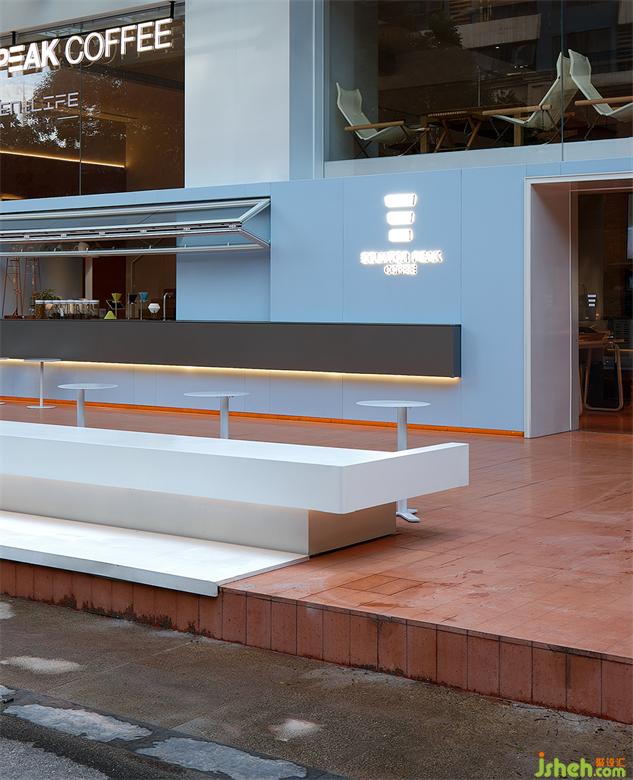 而外立面則更多使用白色界面。COFFEE設(shè)計溫暖的紅色和木質(zhì)色給人一種包裹感,大面積的白色又呈現(xiàn)一種舒展的視覺感受,這兩種顏色的運用很好地詮釋了室內(nèi)外想要打造的不同空間體驗。