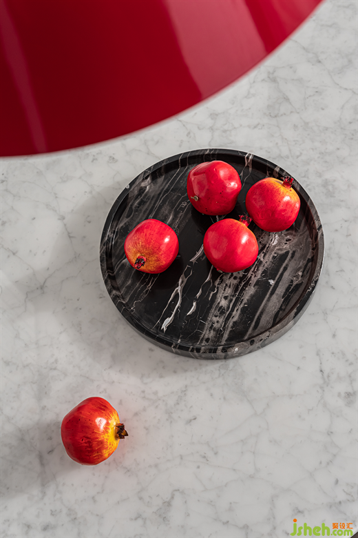 開放式的用餐區(qū)適合一人的簡約生活,紅與黑的經(jīng)典撞色, 搭配紅色錐形的吊燈,打造一場屬于自己的美食盛宴。