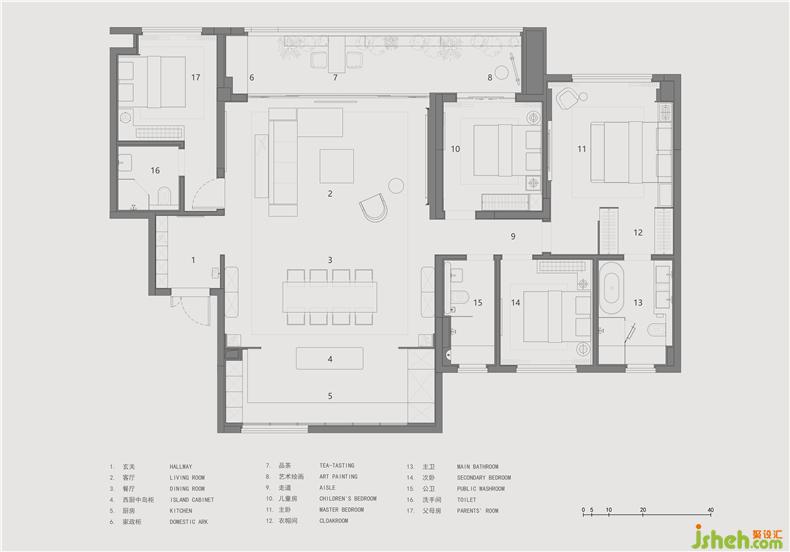 在如此氤氳著東方雅韻和開闔氣象的端方空間中徜徉,最終我們的視線再次回到這一室層次豐富、肌理各異的“紅暈”當(dāng)中?!熬G艷閑且靜,紅衣淺復(fù)深”,說的是牡丹紅;“猶余雪霜態(tài),未肯十分紅”,說的是梅紅;“淡淡微紅色不深,依依偏得似春心”,說的是海棠紅……東方極愛這一抹紅,也最懂這一抹紅,當(dāng)這些氣質(zhì)各異的“紅”交織在一起,襯托在沉郁幽雅的背景中獨綻芳華,樣板房設(shè)計就是那獨屬東方的別樣風(fēng)情,也是這一眼難忘的經(jīng)典之家。