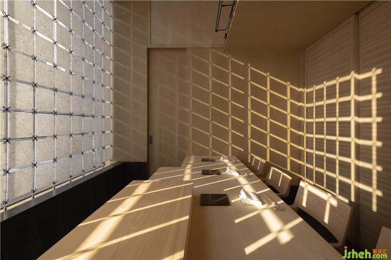內(nèi)部六面體構(gòu)造,經(jīng)手工蠶絲膜制作而成,餐廳設(shè)計現(xiàn)代與傳統(tǒng)的結(jié)合,成為空間氛圍的點睛之筆。