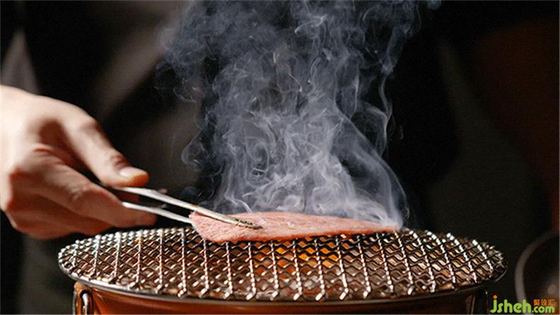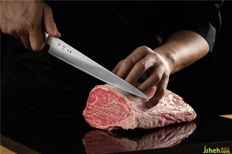 一塊漆黑的墻面銜接玻璃幕墻,沒(méi)有任何花俏的圖案或特殊的紋理裝飾,只有金銅色的店名提醒來(lái)訪者,火燒鋼板背后藏著整個(gè)美味和牛燒肉世界。