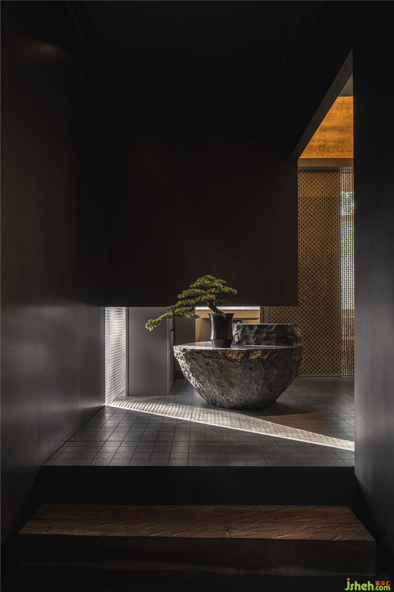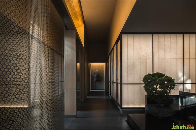 在室內(nèi)空間的設(shè)計(jì)理念中,設(shè)計(jì)師摒棄一般燒肉店張揚(yáng)、熱鬧的排面,將東方侘寂美學(xué)與傳統(tǒng)日本和室相結(jié)合,營(yíng)造遺世獨(dú)立的尊貴氣質(zhì),又不乏溫馨如怡之感。