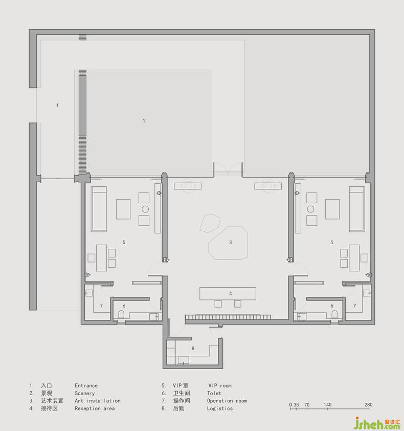 在這樣一個被自然與藝術(shù)包裹的空間中,時間仿佛停止,但時間感卻四處充盈。當我們身處如此時空,會所設計仿佛擺脫了一切形而下的束縛,觸摸到自由——在這里,天地明潤、湖山清靜,古之名流,今之雅士,仿佛都能共享明月清風之無盡藏。