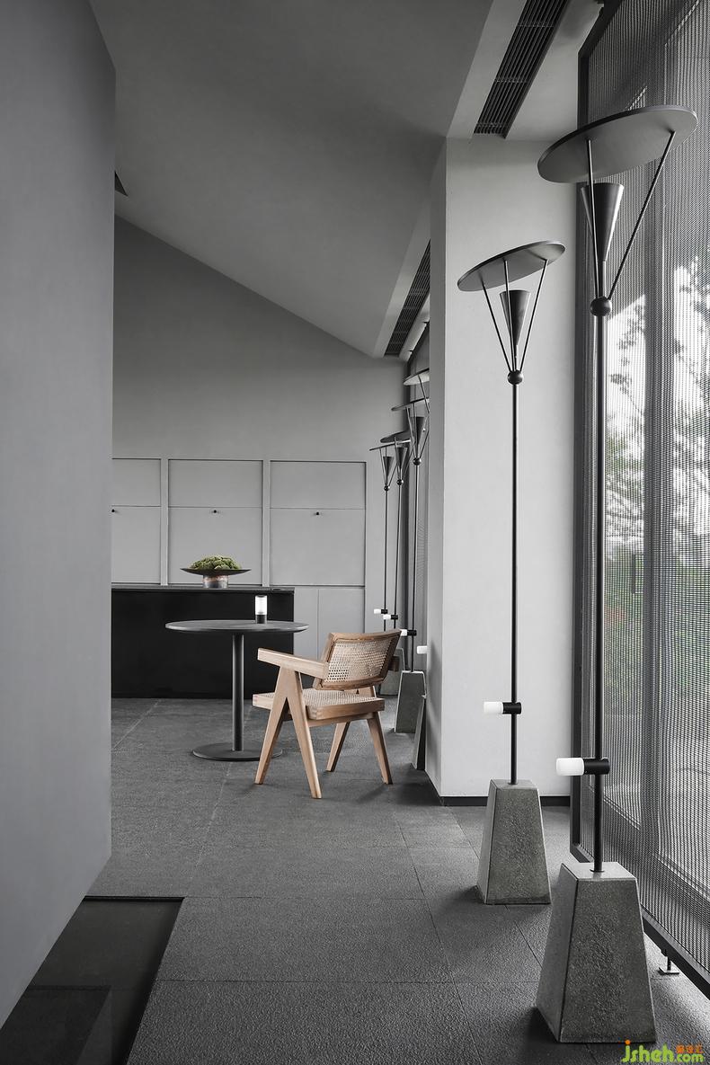 整個(gè)接待空間主色調(diào)為灰色,富有肌理感的不同灰調(diào)構(gòu)筑了空間的不同界面;而兩個(gè)盒子層層疊進(jìn)式的動(dòng)線規(guī)劃,又為來者提供了內(nèi)藏的玄妙,獨(dú)覽的驚喜。