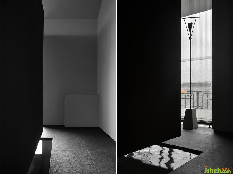 盒子內(nèi)部的亭構(gòu)成一個(gè)微縮美術(shù)館,每次展出一張畫作。與傳統(tǒng)“亭”的概念有所不同,酒店設(shè)計(jì)它是座摒棄外部一切喧囂的亭,旨在制造精神層面上的絕對(duì)靜謐。目所能及的灰度皆向此處流動(dòng),直至抵達(dá)空間內(nèi)部,當(dāng)灰度達(dá)到飽和,使人愈發(fā)專注于眼前唯一的、由藝術(shù)所構(gòu)成的“景”。