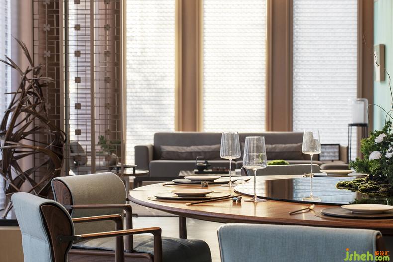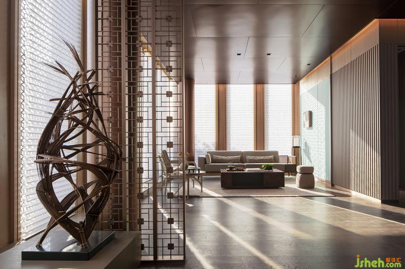在這個(gè)虛化了古與今、自然與建筑界線的靜謐空間中,銷售中心設(shè)計(jì)無數(shù)道屏風(fēng)銜接起的光明與暗影里,一種從東方世界觀里生發(fā)而出的中正平和之美,串聯(lián)起了一切空間、線條、色彩、材質(zhì)的內(nèi)在意義。