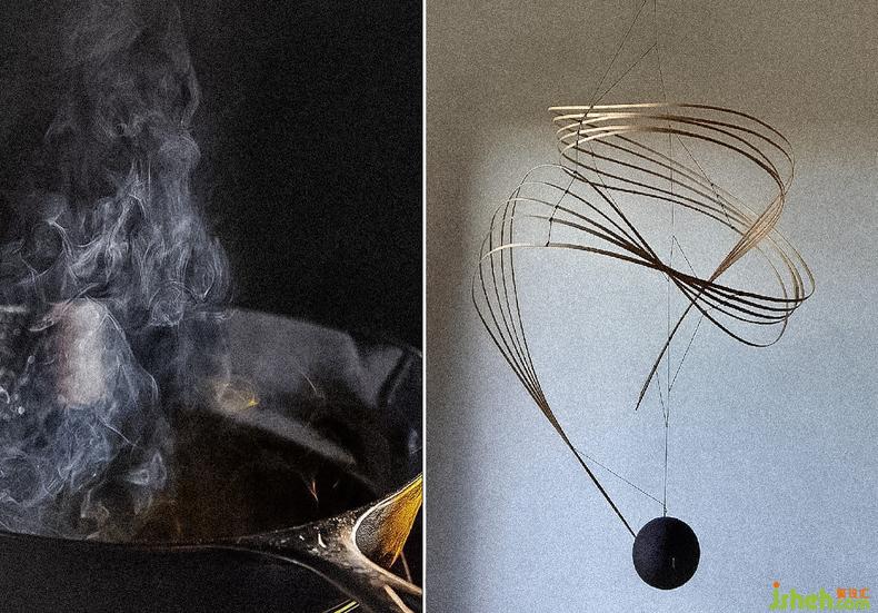 △Aroma(懸掛裝置):LaurentMartin‘Lo’利用五條長(zhǎng)細(xì)的竹子勾畫(huà)出煙霧中美麗的運(yùn)動(dòng)流與圓形螺旋在中間煙霧的形狀。靈感來(lái)自煮菜時(shí)所產(chǎn)生的白色煙霧,寓意佳肴香氣四溢。