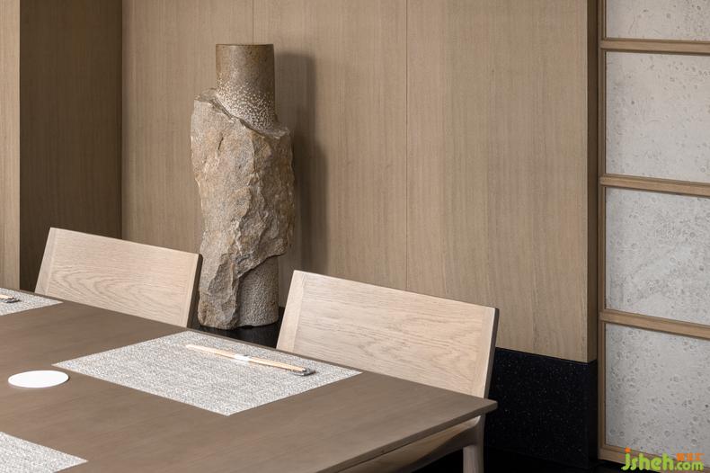 △《器》:研磨的石雕塑象征匠心精神。寓意著用心準備的器具,力求為客人做出最好的料理。