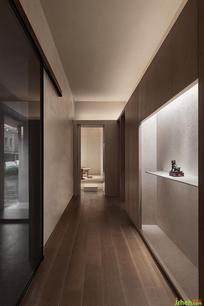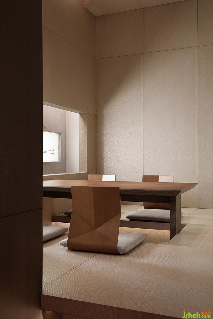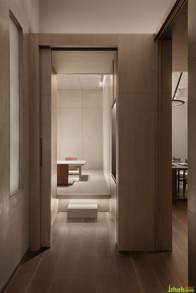 空間入口到達(dá)的門簾隱著灰色空間,迂回的路徑像是在過濾那些不安分的思緒,餐廳設(shè)計推門進(jìn)入便將上一秒的思慮拋到腦后,開始享受當(dāng)下的靜寂。