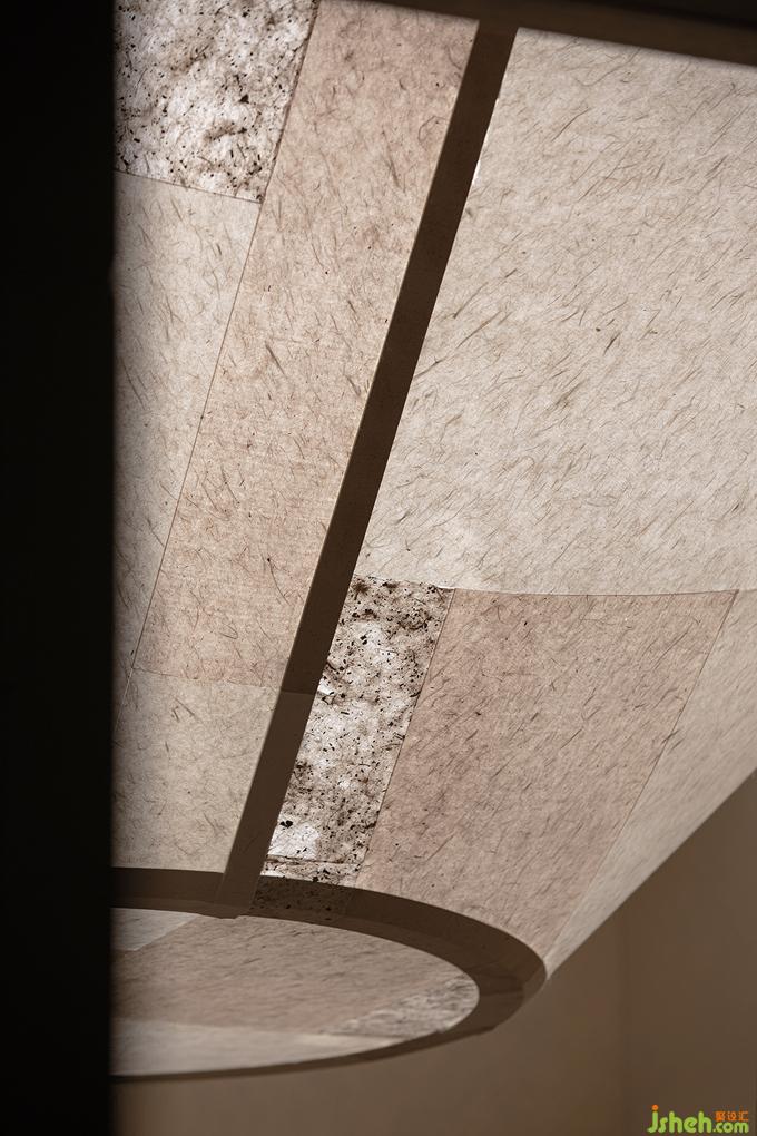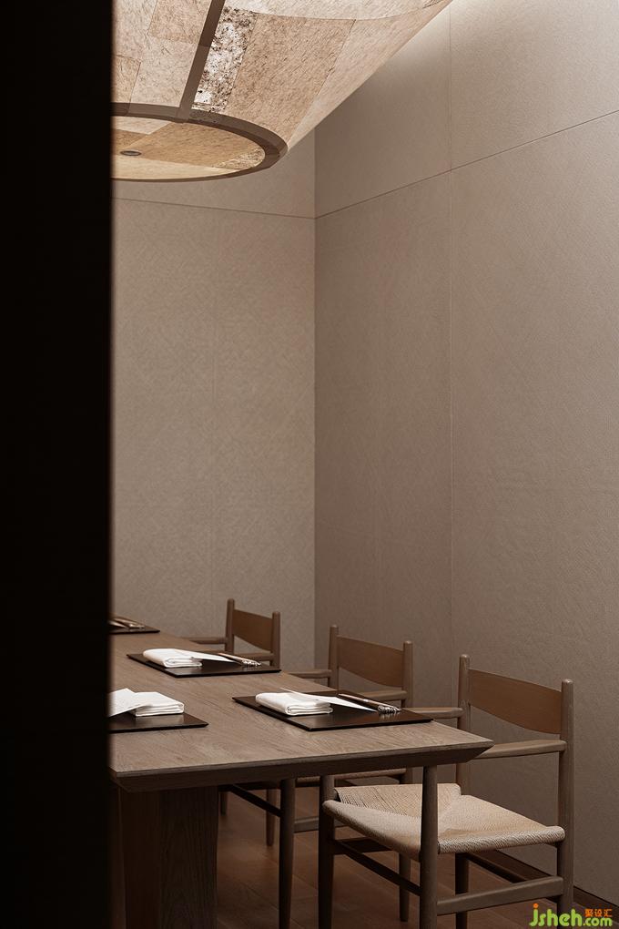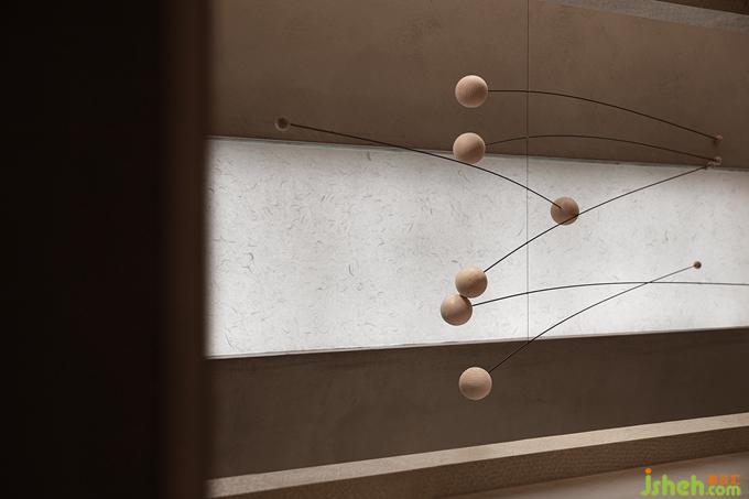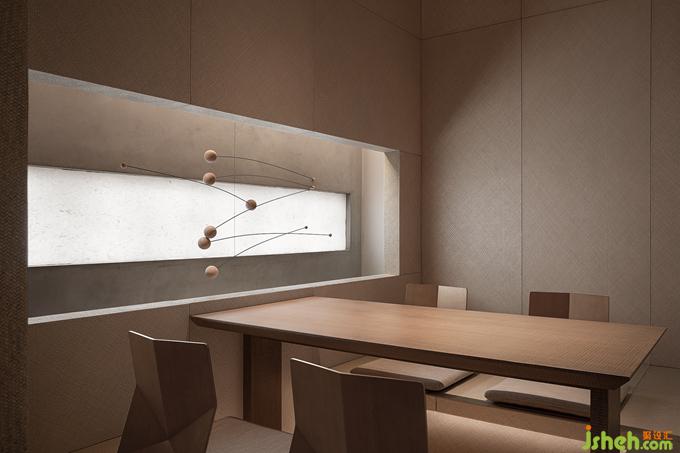 榻榻米包間藤席包裹起來的緊湊空間里沒有多余的裝飾,只開了一長條的窗洞,內(nèi)外框景里是東方的哲思,漂浮著的裝置因為不可觸碰更像是茶道空間里的奧,在留白和豐盈的取舍里,見天地的廣袤,見個體的渺小。