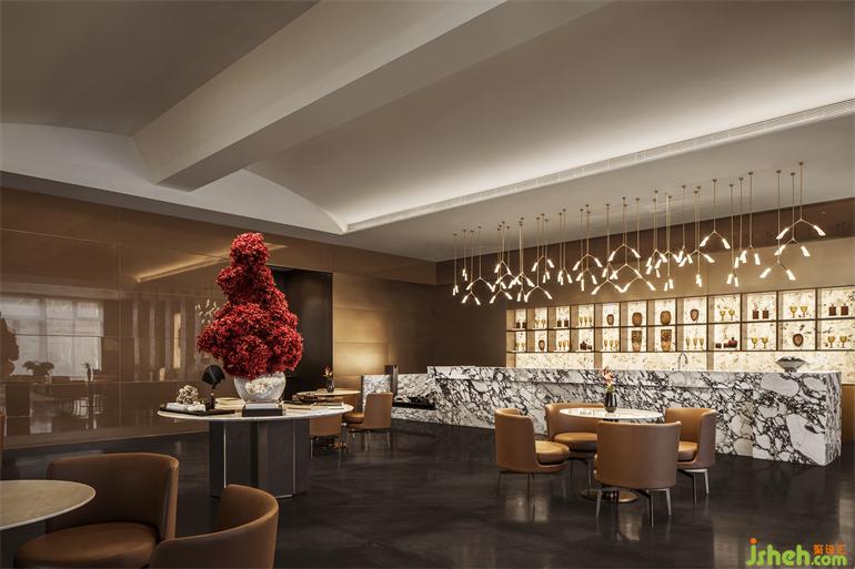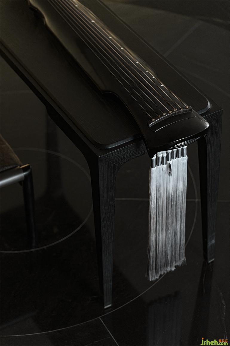 水景區(qū)域的設(shè)計仿佛空間里蕩開的一筆,畫卷正因這無所企圖的留白而頓時嫻雅了起來。亭、臺、橋、水元素被提取為簡潔的現(xiàn)代意象。美學(xué)館設(shè)計盈盈一水間的“戲臺”在曲水流觴的同時還享有聽覺加持,不論是撫一段琴曲,還是彈一支琵琶,都令立體空間感受更加余音繞梁。