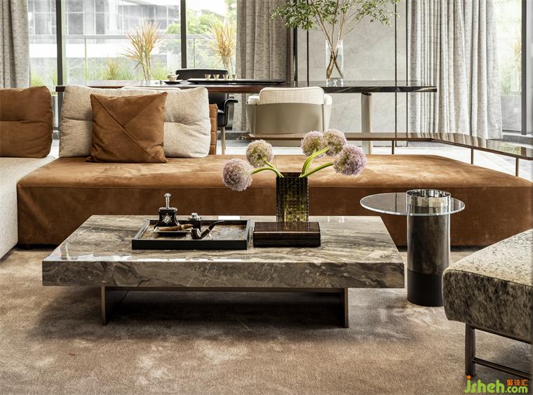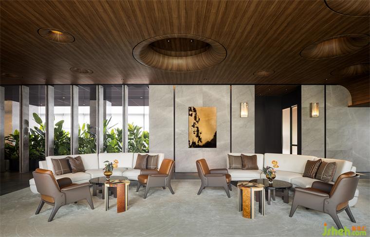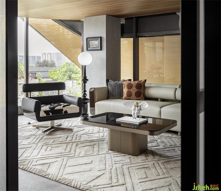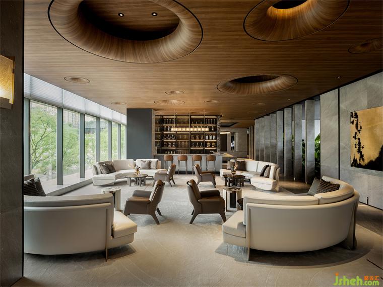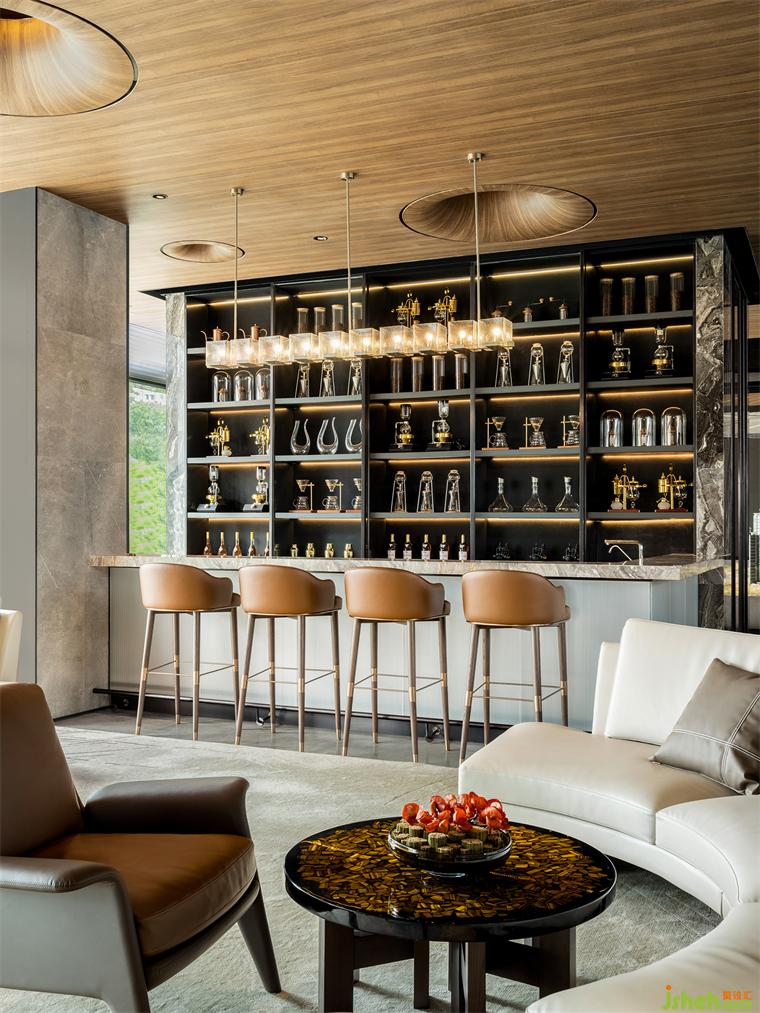 步入第三層,空間氛圍愈發(fā)靜謐尊貴,為VIP活動(dòng)、私人宴會(huì)、商務(wù)會(huì)談和雪茄鑒賞等更為高階私密的活動(dòng)提供完美舞臺(tái)。設(shè)計(jì)在此以一種低調(diào)優(yōu)雅的方式靜靜烘托品質(zhì)感,茶幾、皮革抱枕、水晶器皿等細(xì)節(jié)于無聲處熨帖著高階生活方式的考究,裝修設(shè)計(jì)而石材、金屬、皮革等各種材質(zhì)之間的碰撞也如同一曲當(dāng)代頌歌,于時(shí)尚光影中折射著經(jīng)典質(zhì)感。