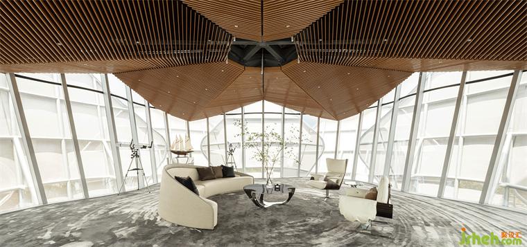 整個(gè)空間的高潮在步入觀江廳那一刻降臨,如同奏響的華彩樂章,壯麗的湘江景色從無邊界的全景落地窗中四面襲來,令人有種淚盈于睫的震撼。此觀江功能平臺(tái)是一個(gè)可在二層與三層間自由升降的裝置,裝修設(shè)計(jì)以長(zhǎng)沙市花“杜鵑”為藝術(shù)靈感,天花結(jié)合現(xiàn)代科技,能隨時(shí)間開闔,如同花瓣般圍合盛放、引景入室。