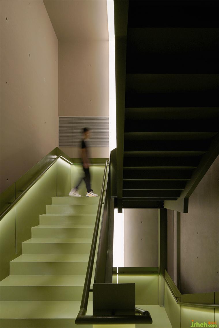 直到二層平臺才得以窺見設計整體面貌:白色箱體沿墻面自一層延伸到頂面天花并與窗邊縫隙形成立體咬合關系,整體形態(tài)與照明方式極具藝術性。這不僅讓客人進入餐廳的過程變得有趣,餐廳設計也極大地滿足新的商業(yè)環(huán)境下的消費群體對打卡及社交傳播的需求。緊接著路過一段拱形變色通道,迎著自然光的方向便抵達精致又綠意盎然的就餐大廳。