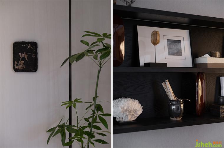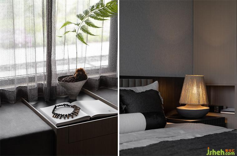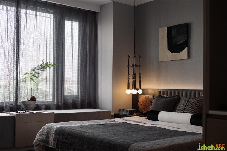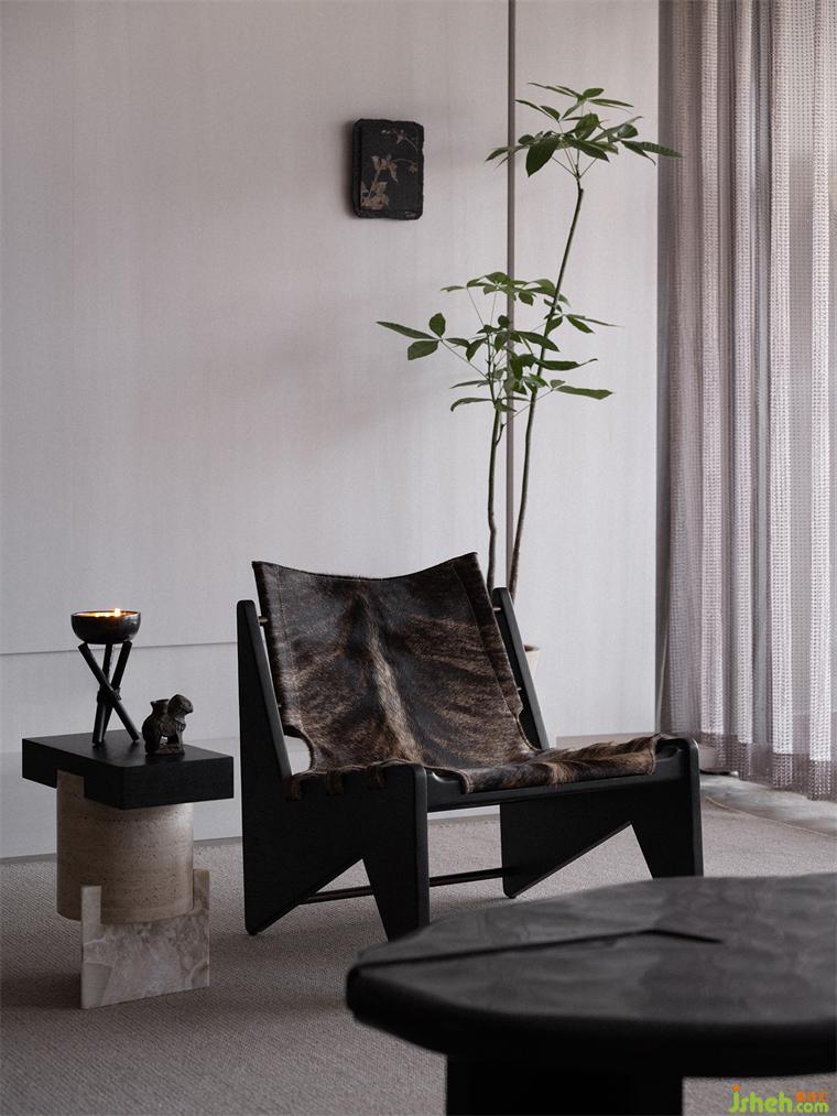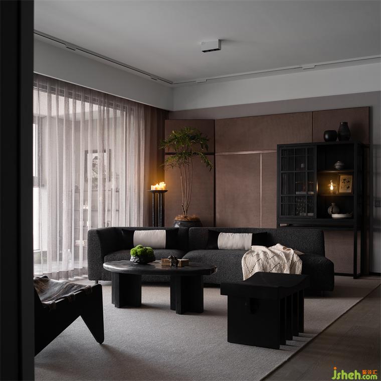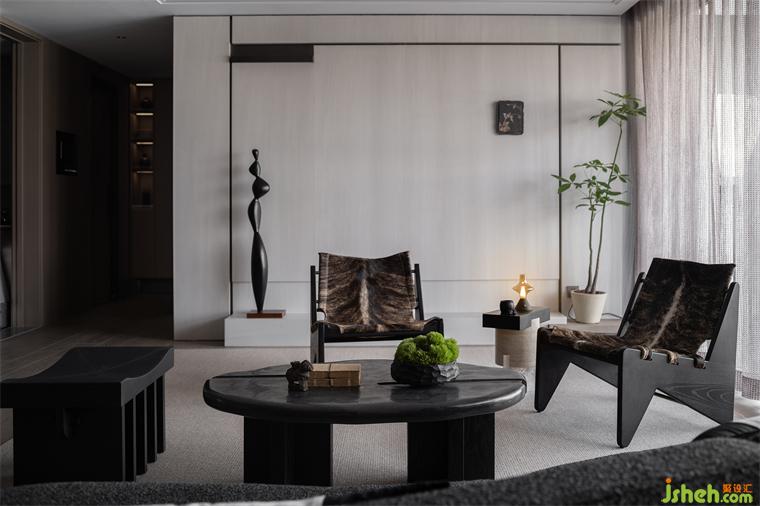 朗闊方廳,以水墨畫作落筆,在墨色、棕色、米色中凝練出曠遠(yuǎn)的山居逸趣,浩渺的氣勢與寧靜儼雅的空間,引領(lǐng)視覺撫山而行。以皮、木、棉等材質(zhì)構(gòu)建豐富、細(xì)膩的層次,樣板房設(shè)計(jì)在古樸中洋溢出幾分溫潤。