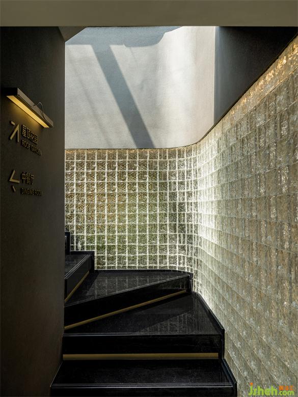 接待區(qū)一側(cè)的下沉式戶外庭院