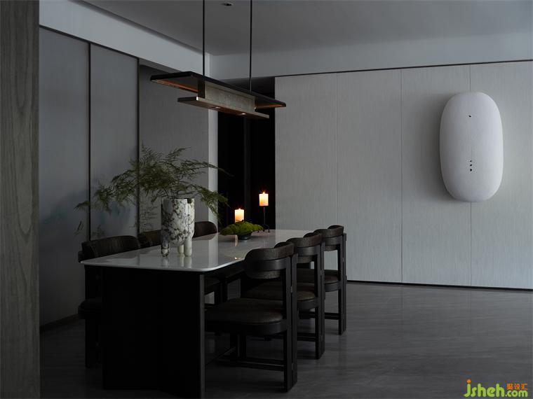 大氣的吊燈如云帆懸于桌椅之上,