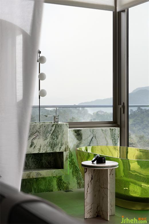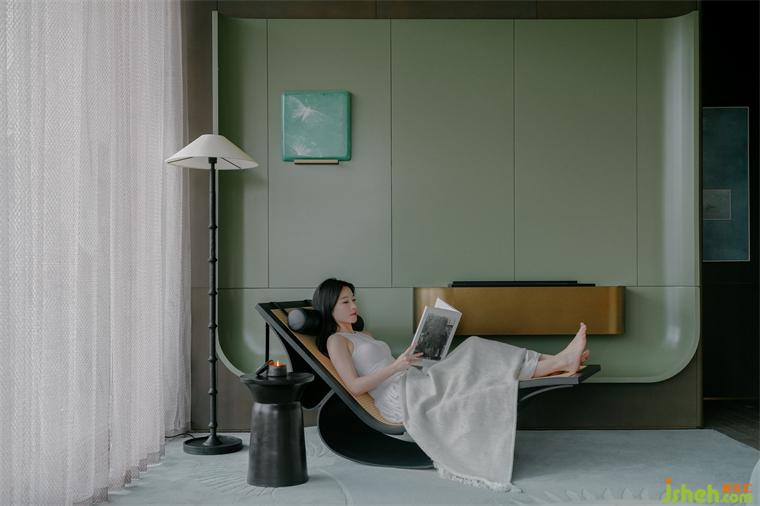 竹青大漆壁爐背景令生活的節(jié)奏沉靜下來,臥于藤編躺椅,于清涼中小憩,或打開落地?zé)糸e翻雜志,隨之進入度假的心境。